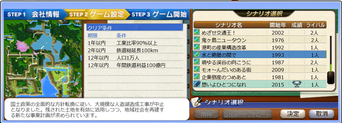 星空支社 1話 2019年11月21日 水と絶壁の間へ 0 舞台はとある巨大湖で、大型公共事業の見直しによって建設中止になって長い間放置されたダム。 住民を退去され、インフラが撤去された地域を再建するのが目的。 ダム建設で退去された住民を取り戻し、地域再建をするシナリオで、3DS版でクリアしたことがあるので、PC版でもプレイしていきます。 つづきはこちら