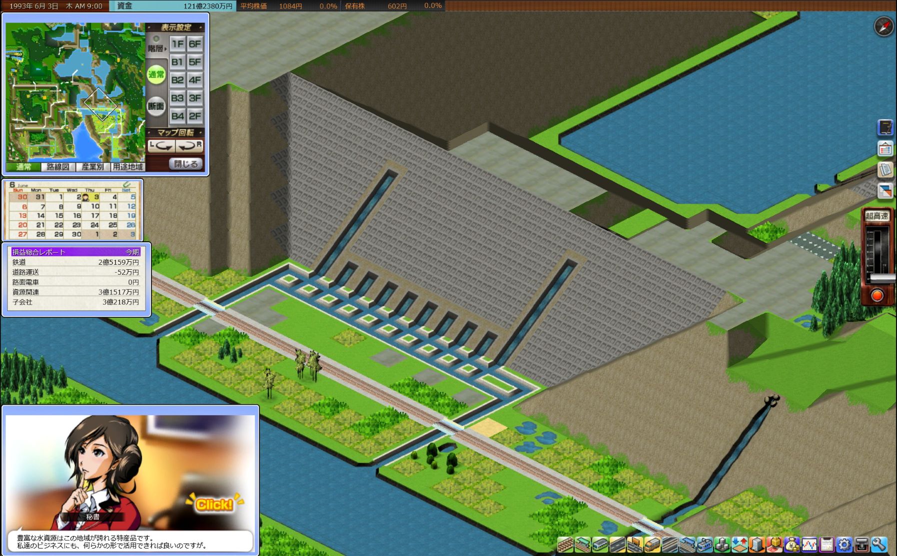 星空支社 2話 2019年11月23日 水と絶壁の間へ 0 秘書「豊富な水資源はこの地域が誇れる特産品です。私たちのビジネスにも、何らかの形で活用できればいいのですが」 背景に作りかけのダムがあることから、本来は水量発電を示唆した台詞でしょう。 実際、この地域には水力発電所を建設できる滝が多いのですが……。 今回は、更に資材工場を建設して工業比率90%を目指していきます。 つづきはこちら